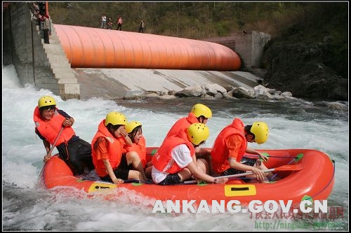秦岭峡谷漂流项目是宁陕县六大景区建设当中,洵河水上观光区的重要组成部分。该项目于去年3月在“西洽会”上与西安双龙公司洽谈成功并签定投资协议,计划总投资1500万元,包括峡谷漂流、时空隧道、探险漂流、水上乐园、野外生存训练等4个部分。在宁陕县和广货街镇的大力支持和帮助下,西安双龙公司于去年4月初开工建设,仅用3过多月时间就完成首期工程投资400万元,建成了蒿沟至向坪9公里的洵河漂流项目和避暑休闲度假区,成为宁陕县旅游开发建设速度最快的项目之一,在安康北大门上构建出一道靓丽的风景。项目业主计划购置橡皮艇200条,使橡皮艇达到300条,建成了功能完善的中心服务区,提高日接待能力。
