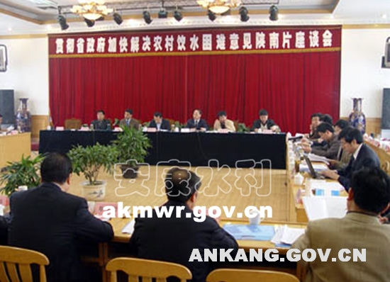 省水利厅厅长谭策吾出席会议并讲话,市委副书记彭随义代表市委、市政府向大会致词,副市长薛建兴出席会议,市水利局局长赵继民代表我市就加快我市解决农村饮水困难做了讲话,会议由省水利厅李永杰副巡视员主持。陕南三市水利局主管农村饮水工作的负责同志和业务骨干、陕南各县水利局的主要负责同志以及省水利厅办公室、总工办、规计处、建管处、防汛抗旱办、供水处、宣传中心、信息中心的负责同志和共70余人参加了会议。安康、汉中、商洛市以及汉滨区、镇巴县、洛南县等6个市县代表在大会上作了交流发言。省水利厅供水处通报了陕南片“十一五”规划复合评估情况,总工程师孙平安、副总工程师程子勇就加快前期工作进度、规范前期工作程序等做了专题发言,省水利工程建设管理局雷春荣局长就农村饮水工程的建设管理工作也做了发言。