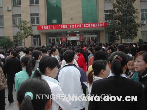 4月24日上午,宁陕县委宣传部、县总工会、县教育体育局、安全生产监督管理局、县交警大队联合举办了城区职工越野赛,各机关单位、城区居民共1000余人参加了比赛。县委副书记郭珉、县委常委常务副县长郭达彦、县委常委纪委书记邝贤君、县委常委宣传部部长齐致祥、县委常委雷子霖、县人大常委会副主任汪时政、副县长马霞、副县长吴大芒、县政协副主席刘家华、县政府法律顾问张铭轩以及县安全生产监督管理局、教育体育局、交警大队负责人出席了开幕式,县总工会主席王正琰主持了越野赛开幕仪式。