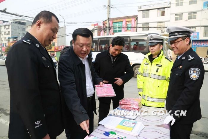 1月23日,副市长杨尚伟带领市公安、交通、安监、住建、工商等部门负责人,在汉滨区、高新区等地检查春运道路交通安全和中心城区缓堵保畅工作,并看望慰问坚守在春运一线的公安民警和干部职工。