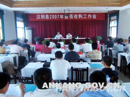 5月21日,汉阴县召开蚕茧收购工作会议,对今年的蚕茧收购工作提出具体要求。一是要统一思想,提高认识。各级各相关部门及收购公司要立足全局,严格市场准入,充分认识收购工作对促进蚕桑产业发展的重要性,通过抓好收购工作促进全县蚕桑产业持续健康快速发展。二是要加强领导。各乡镇和有关部门务必高度重视,切实加强领导,保证政策兑现,稳定县内市场,有关部门要加强组织协调,采取得力措施,加大执法力度,全力维护蚕茧收购秩序,确保各地收购工作顺利进行。三是要严格执行质量标准和价格政策。在鲜茧收购中,要严格执行定级收购,任何收购单位都不得抬高抢购或压级压价坑农、害农。物价、质监部门要加大监督检查力度,对价格、质量违法行为,坚决予以严肃查处。四是要诚信守约,认真落实优惠政策。各级要耐心引导蚕农增强守约意识,按约定交售蚕茧。收购公司要履行承诺,依法按政策按已公布的价格、等级进行收购。五是要优质服务。收购公司要筹足资金,不准向蚕农打白条。当天到站的茧必须当天收购。尽可能为蚕农提供更多的方便,对蚕农提出的问题要耐心解释,严禁态度、行为粗暴。