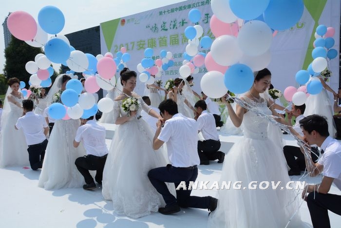 5月20日,由安康市委、市政府主办,安康高新区管委会、共青团安康市委承办的“情定汉水 牵手安康”2017安康首届高新公园集体婚礼仪式上,22对新人在亲人和朋友的见证下,走进了神圣的婚姻殿堂。市人大常委会副主任马孝芳,副市长孙矿玲,市政协副主席孟平出席活动。