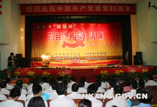 6月25日,安康市纪委、市委宣传部、市直机关工委、市监察局、市广播电视局、中国移动安康分公司联合举办的安康市“移动杯”“为民、务实、清廉”为主题的演讲比赛决赛在安康职业技术学院东校区大礼堂隆重举行。省纪委常委高山,省纪委宣教室处长汪安平亲临比赛现场指导演讲活动,市上领导刘建明、彭随义、崔光华、陈勇、吴德珠、钟顺虎、刘坤、郑光照、程必呈、吴应德、张先德出席演讲活动。