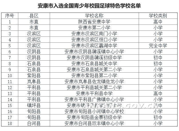 日前,陕西省教育厅公布我省入选2017年全国青少年校园足球特色学校及试点县(区)名单。我市共有18所中小学校被教育部认定并命名为“全国青少年校园足球特色学校”。
