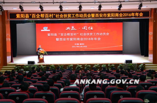 1月19日,紫阳县“百企帮百村”社会扶贫工作动员会暨西安紫阳商会2016年年会召开。据悉,该县将通过开展百企进村、千人结对、产业对接、创业就业等主体活动,采取捐赠扶贫、智力扶贫、就业扶贫、产业扶贫、商贸扶贫等多种途径,帮助111个贫困村加快脱贫进程。