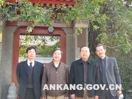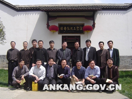 北京大学中文系主任温儒敏教授(左二)与安康学院中文系主任戴承元副教授(右二)汉阴县三沈纪念馆筹建领导小组组长陈绪伟(左一)等合影