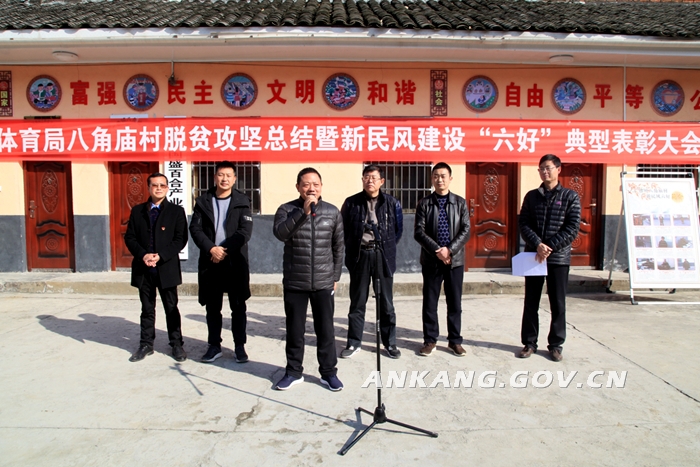12月11日,市直体育系统全体干部职工走进平利县广佛镇八角庙村,开展脱贫攻坚总结暨新民风建设“六好”典型表彰大会及健身交流活动。市体育局局长陈元安、副局长陈复勇、纪检组长郑翔太、市体育运动服务管理中心主任贺松林等领导和八角庙村干部群众200余人参加。