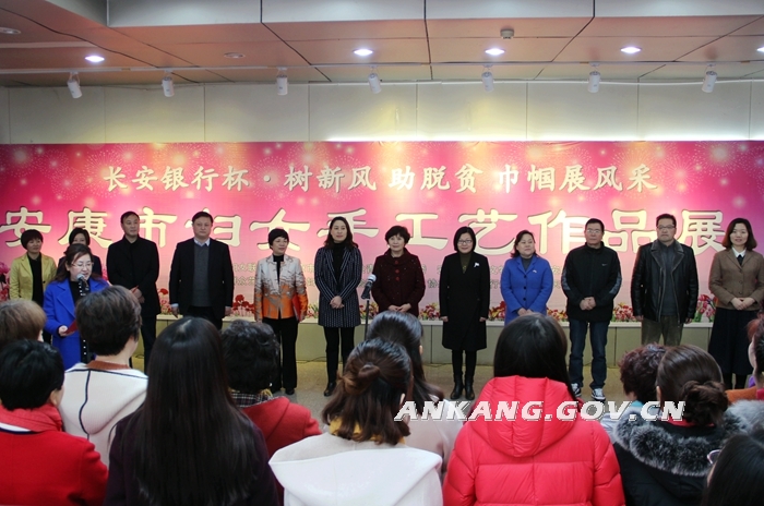 在“三八”国际劳动妇女节来临之际,3月6日, 由市妇联、市总工会、团市委、市文化文物广电局、市扶贫局主办的“长安银行杯·树新风 助脱贫 巾帼展风采”--安康市妇女手工艺品大赛作品展在市群艺馆举行。市人大常委会副主任马孝芳、市政协副主席孟平出席开展仪式,市政府副市长杨淼宣布活动正式开展。