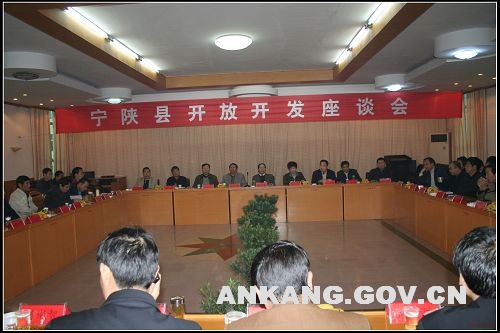 10月11日,宁陕县召开了开放开发座谈会,县四大班子领导及所有在宁陕的投资商参加了会议,会议由县委副书记郭珉主持。