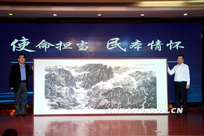 会上,郭青代表安康市向中国建设银行赠送定点扶贫30周年纪念画作。建设银行与安康市人民政府签署建设银行集团子公司扶贫战略合作意向书。