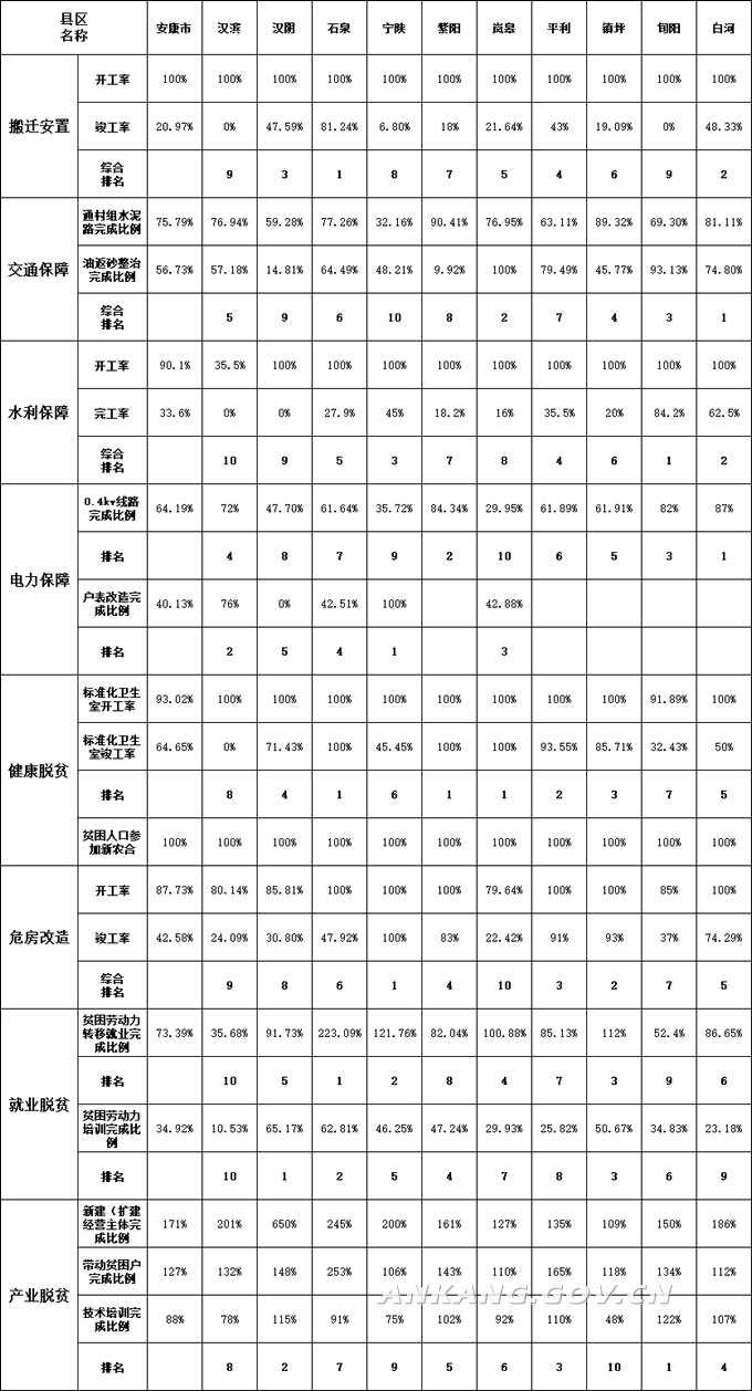 安康市脱贫攻坚指挥部行业脱贫重点任务进度通报