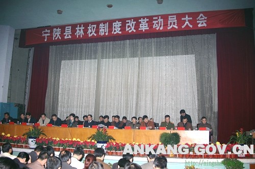 5、宁陕在全省率先启动集体林权制度改革。从今年8月起,宁陕县通过巩固确认、完善提高、继续深化等三种方式开展集体林权改革试点,用1年时间完成全县306.2万亩集体林权改革任务。据悉,全省共确定10个县进行林权制度改革试点工作,安康市仅宁陕县被列为试点县。目前,县上已抽调17名县级领导、124名科级干部和239名工作人员进驻全县98个村,确保此项工作于2008年8月底前全部结束。