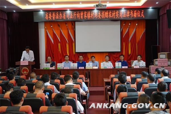 活动首先举行了农村实用法律书籍捐赠仪式,省委普法办、省司法厅向曾家镇13个行政村两委以及镇机关赠送《陕西省农村社区实用法律系列丛书》16套1000余册。