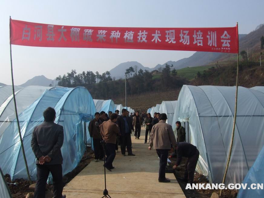 为提高白河蔬菜种植水平和种菜户的经济效益,2008年白河县农业局以科技培训增效为主题,以服务农民为宗旨,全面开展关键技术环节的培训现场会。培训按照生产季节分阶段、分步骤进行,目的在于引导农户做好生产技术中的规定动作,提高种植技术水平。继2月22日召开的育苗培训现场会后,3月10日又在县生态农业循环经济示范园举办了以菜苗移栽定植为主要内容的技术培训现场会,茅坪、中厂两个蔬菜强镇的近百名蔬菜种植户参加了现场会,会上技术人员对菜苗移栽、定植、管理等技术作了详细讲解,并现场操作示范,发放技术材料,让种植户从认真听、现场学、亲自操作中真正掌握技术要点。