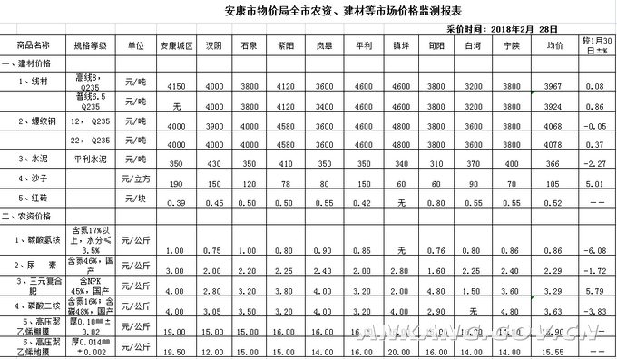 2018年2月全市农资、建材等市场价格监测报表(第二期)