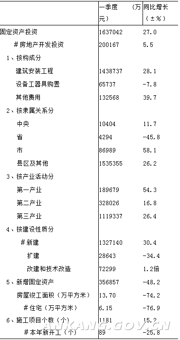 2018年一季度全市固定资产投资