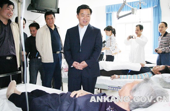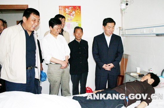 5月8日上午,市委副书记、市长方玮峰,副市长王安利在市残联、汉滨区政府等相关部门负责人的陪同下,冒着大雨,带着慰问品,来到汉滨区中医院亲切看望做完复明手术正在康复中的白内障患者。