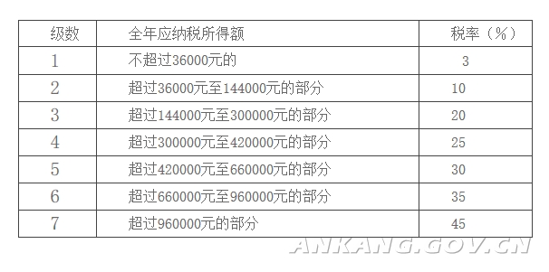 (一)综合所得,适用百分之三至百分之四十五的超额累进税率(税率表附后);