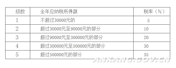 (二)经营所得,适用百分之五至百分之三十五的超额累进税率(税率表附后);