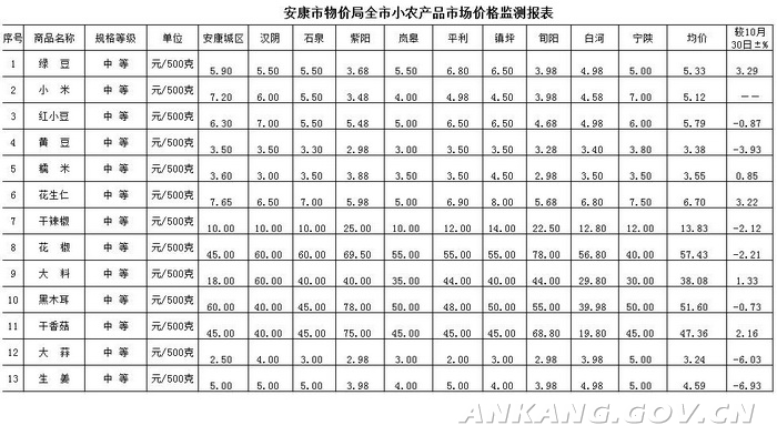 2018年11月全市小农产品市场价格监测报表(第十一期)