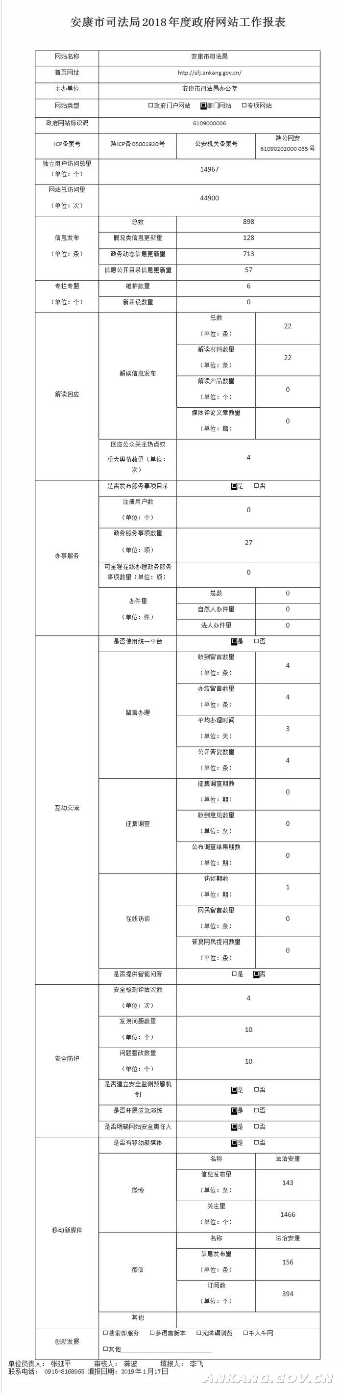 安康市司法局2018年度政府网站工作报表