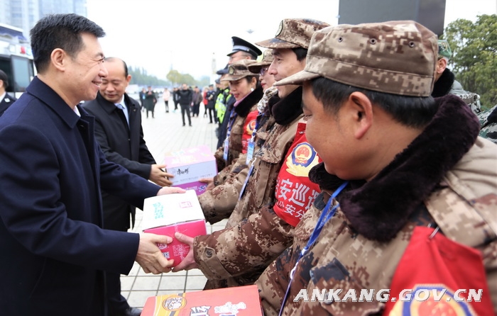 郭青一行先后到市公安局汉滨分局综合执法办案管理中心、中心城区金州广场街面智慧指挥联控平台执勤点、汉滨区新城派出所等地,亲切看望公安巡警、特警、交警、执勤民警和红袖章义务巡逻队员等一线执勤人员。每到一处,他都与大家一一握手并亲切交谈。他指出,过去一年,全市公众安全感连续三年全省第一,平安建设知晓率、扫黑除恶专项斗争群众知晓率全省第一,为全市发展稳定作出了突出贡献,凝聚了全市政法系统尤其是广大公安干警的汗水和奉献,甚至是流血和牺牲。郭青向大家表示崇高敬意,带去了市委、市政府的关心和慰问,并向全市广大公安干警及亲属拜年。