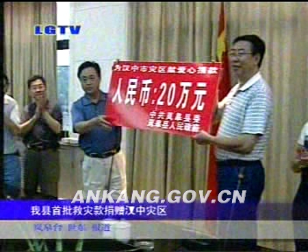 5月29日,岚皋县政协主席张益众一行带着17万岚皋人民对灾区同胞的一片深情,将首批20万元抗震救灾资金捐赠汉中灾区。