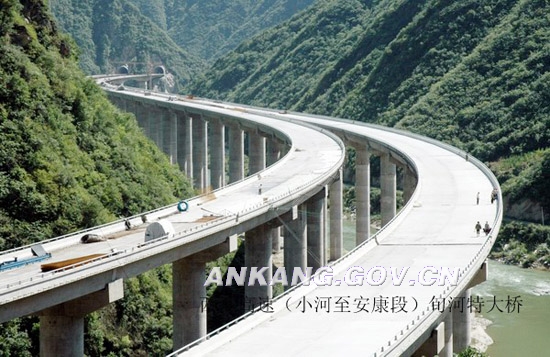 西康高速公路是中国国道主干线——西部大通道包头至北海公路在陕西境内的一段。由陕西西安市至安康市,途经户县、柞水县、镇安县和旬阳县。小河至安康段(小康段)是安康市开工建设的第一条高速公路,西康高速公路安康段线路起于旬阳县小河镇界牌立交,途经大棕坡、桐木乡,穿过包家山隧道至汉滨区茨沟、松树坝,沿冉家河而下,至花园乡,止于五里镇的尹家营,全长57公里,其中60%以上路段为隧道桥梁,总投资44亿元,按照山区四车道高速公路标准建设,将与建成通车的西安到柞水高速公路连接,形成西安到安康的快速通道。