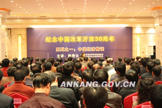 11月26日,我市庆祝改革开放30周年系列活动之一“中国经济解读”讲座在安康晶海酒店会议厅举行。