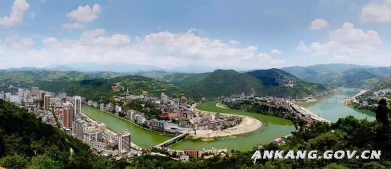 县城三面临水,四周叠翠,峰高谷底,沟壑分明,汉江南流,旬河北绕,两流合襟,阴阳回旋,八卦罗列,形成栩栩如生的阴阳鱼太极图形,构成一个美轮美奂的天然太极城,令人遐思无限。