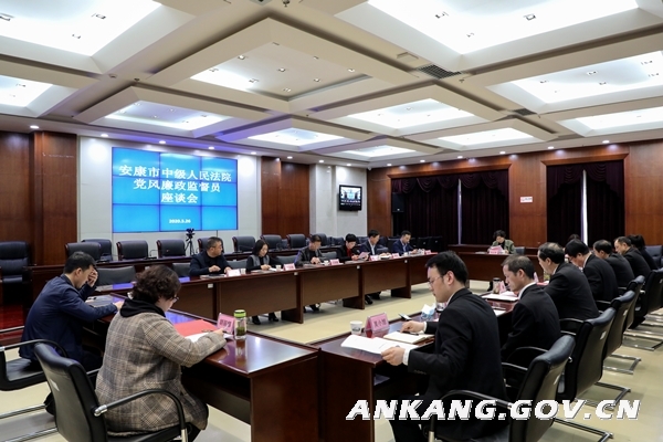 3月26日,安康市中级人民法院召开党风廉政监督员座谈会议,集中征求廉政监督员对法院工作的意见和建议。院党组书记、代院长贺世辉,市人大常委会内务司法工委主任艾明甫等11位廉政监督员参加会议,党组副书记、副院长冯康主持座谈会,党组成员、政治部主任钟军高,市纪委监委驻中院纪检监察组组长闵远平参加会议。