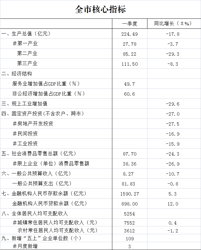 2020年一季度全市核心指标