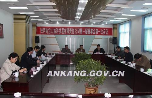 3月18日,陕西南宫山旅游发展有限责任公司在岚皋大酒店举行第一次股东大会,会议审议了《关于审议<公司章程>的议案》、审议了《关于选举公司第一届董事会董事的议案》、审议了《关于选举公司第一届监事会监事的议案》,选举产生冯大为、张新蔚、解金城、王旭涛、陈前平五位董事,选举产生了周振鑫、王润生、王敬生三名公司监事。随即召开了第一届董事会,推选产生了公司董事长冯大为。聘任向东担任公司总经理,财务总监郝延梅。 市长助理、市旅游局局长王汉琳到会对陕西南宫山旅游发展有限公司第一次股东大会成功召开表示祝贺,并同选举产生的五名董事合影留念。