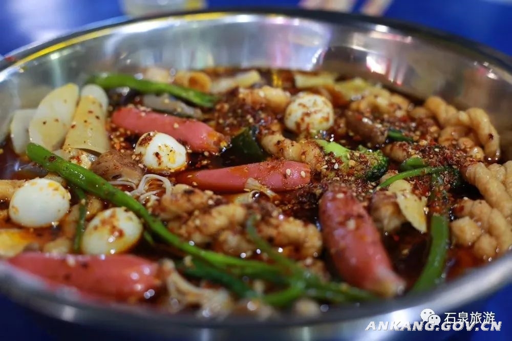 汉江鱼味道鲜美、肉质滑嫩,既没有塘鱼的粗粝,也没有海鱼的腥味,不仅让当地人百吃不厌,更是征服了五湖四海游客的胃,成为了难忘的味觉记忆。石泉知名度最高的一道“硬菜”。一条汉江里长大的鱼,经过炭烤后在加上秘制汤料放在炭火上慢慢煨着,一席人围桌而坐,再叫上几盘爆菜、凉菜、啤酒,这就是石泉夜市标配了。