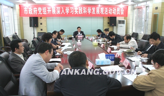 3月27日,按照市委统一安排,市政府党组迅速召开学习实践科学发展观动员会,市政府党组书记、市长方玮峰就市政府党组开展深入学习实践科学发展观活动进行了全面安排部署,对切实搞好政府党组及政府系统学习实践科学发展观活动提出了明确要求,市政府在家党组成员、班子成员及副秘书长参加了会议。会议讨论通过了《中共安康市人民政府党组关于开展深入学习实践科学发展观活动的安排意见》,成立了市政府党组深入学习实践科学发展观活动领导小组及办公室,确定了党组各成员和市政府领导同志学习实践活动联系点。