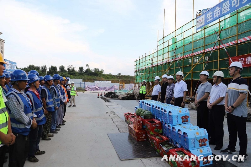 8月5日至6日,市委常委、组织部部长黄戈先后来到安康江南再生水厂、安康工人文化宫项目工地看望慰问在高温酷暑中坚守岗位、辛勤工作的建设者,为他们送上防暑降温物资,代表市委、市政府向奋战在高温一线的广大建设者们表示问候和感谢。市人大常委会副主任、市总工会主席陈伦宝参加部分慰问。