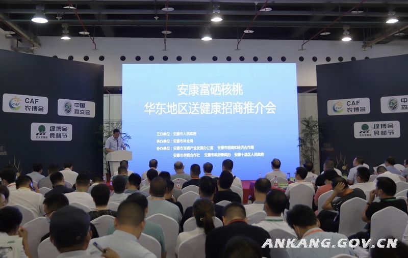 8月11日,借助第三届中国森林食品交易博览会平台,以“发展安康富硒核桃、服务全国人民健康”为主题的安康富硒核桃华东地区送健康活动在上海光大会展中心举行。全国木材行业管理办公室原副主任孙建,中国绿化基金会副主席王祝雄,中国林业产业联合会副秘书长石峰,陕西省林业局二级巡视员程建中出席活动,安康市政府副市长鲁琦、上海陕西安康商会会长白建博为活动致辞,安康市林业局局长陈扬斌、中国农科院郑州果树研究所研究员曹尚银分别对安康富硒核桃进行了专场推介和特别推介。