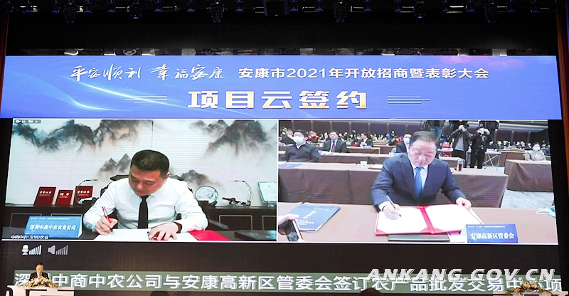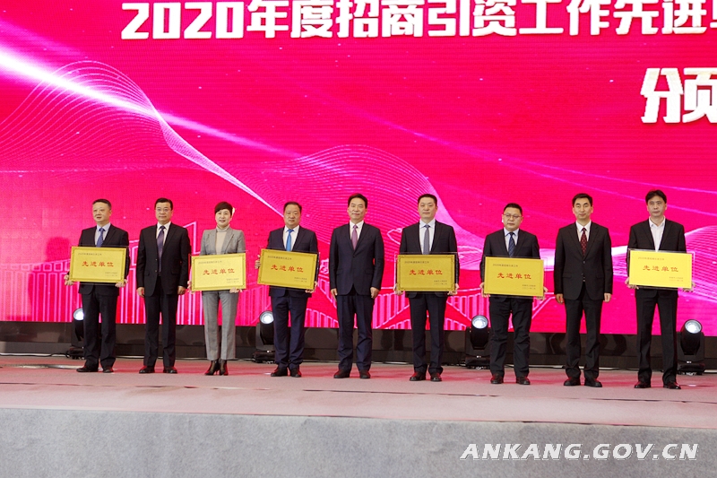 会上通报了全市经济社会发展情况,总结了全市招商引资工作、推介了重点投资领域,聘任了禹国刚等6人为开放发展高级顾问,表彰了2020年度招商引资工作先进单位、先进个人和返乡创业优秀企业家,兑现了第二轮毛绒玩具文创产业发展基金。据悉,大会采取线上线下联动、域内域外协同的方式进行,现场共签约合同项目11个,总投资77.7亿元。佛山市陕西商会、中山市陕西商会、上海安康商会、广东省安康商会、西安安康商会、北京安康商会筹委会、杭州安康商会筹委会、中铁建发展集团、上港物流、深圳市中小企业联谊会等各地商协会和企业客商及新闻媒体代表5000余人通过网络平台在线参加或收看大会。