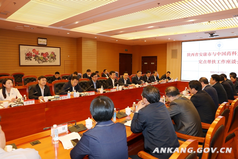 在随后召开的座谈会上,郭青对中国药科大学为我市打赢脱贫攻坚战给予的鼎力支持和倾心帮扶表示由衷感谢。他指出,安康将认真贯彻习近平总书记关于深化东西部协作和定点帮扶工作的重要指示,抢抓五年过渡期政策机遇,着力巩固拓展脱贫攻坚成果,接续推进乡村振兴,扎实推动经济社会高质量发展。诚挚希望中国药科大学将帮扶镇坪县的成熟经验向我市紫阳、平利、宁陕等县拓展,在技术培训、资源普查、基地建设、品牌宣传、人才培养等方面给予更多支持,推动安康全域中药材产业发展迈上新台阶,助力安康谱写新时代追赶超越新篇章。