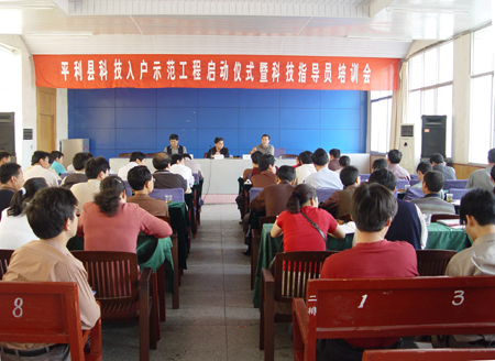 5月11日,平利县科技入户示范工程启动仪式暨科技指导员培训会在平利饭店举行,副县长李全成出席会议并作重要讲话,全县各乡镇主管农业乡镇长和农业综合服务站站长、科技入户示范工程领导小组成员单位负责人、县农业专家、技术指导单位负责人及技术指导员参加了仪式。