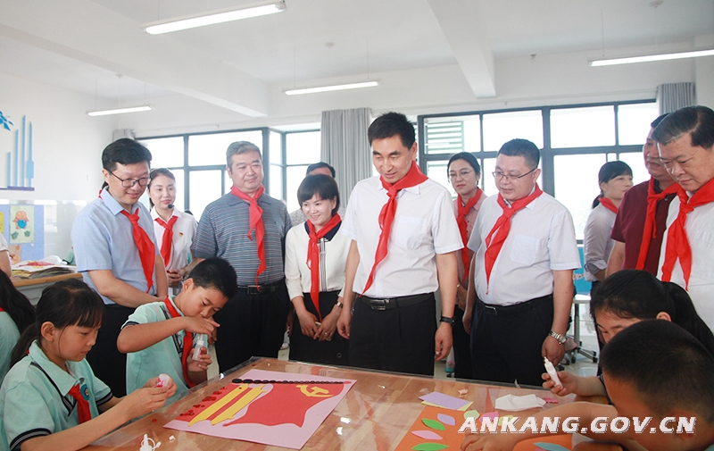 黄戈来到汉滨初中滨江校区看望慰问少年儿童,亲切询问了解孩子们学习生活情况,同大家一起做手工,共读一本书,参加少先队入队仪式,为新队员们系上红领巾,并送上节日祝福和美好期望。寄语孩子们要牢记习近平总书记来陕考察时对大家提出的“文明其精神、野蛮其体魄”殷切嘱托,努力锻炼身体,刻苦学习知识,打好基础,报效祖国。叮嘱有关部门要努力为少年儿童营造健康、快乐、安全的学习生活环境,让他们茁壮成长、全面发展。