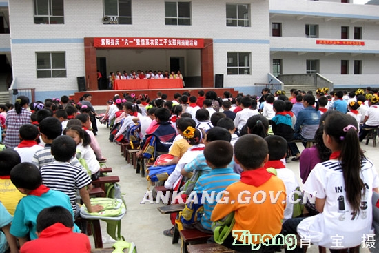 6月1日下午,紫阳县洞河镇中心学校锣鼓喧天,掌声阵阵,处处洋溢着欢乐喜庆的节日气氛。由共青团紫阳县委、紫阳县卫生局、洞河镇党委联合开展的“紫阳县庆‘六一’暨情系农民工子女慰问捐赠活动”在这里隆重举行。县委副书记李大明出 席活动,并代表县委、县政府向少年儿童送去了节日的祝福,向辛勤耕耘在教育一线的广大教职员工致以崇高的敬意。