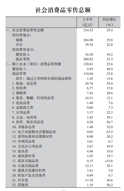 2021年上半年社会消费品零售总额