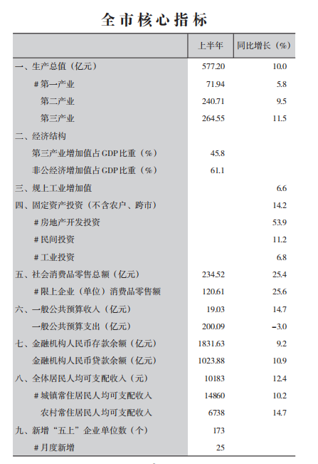 2021年上半年全市核心指标