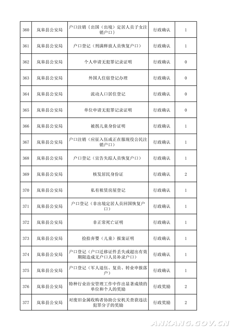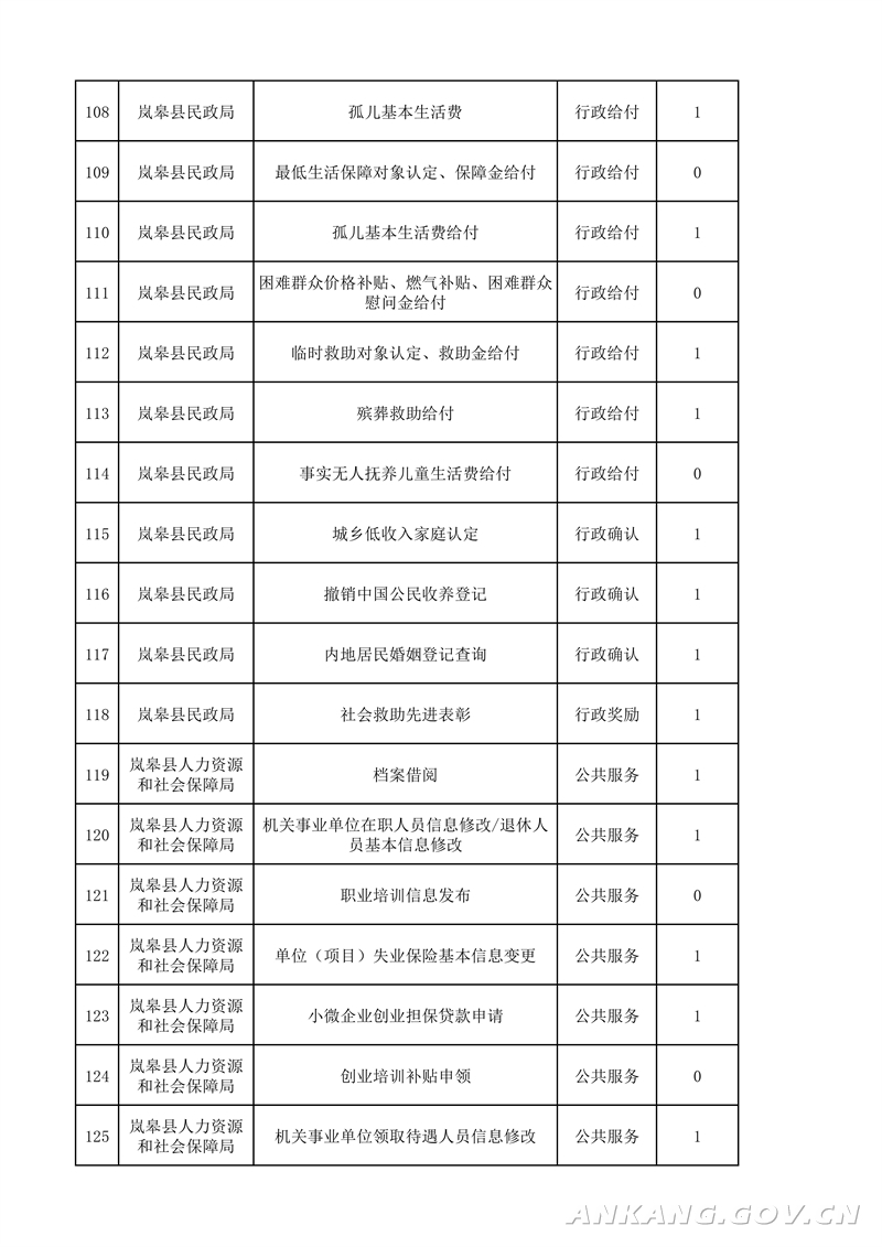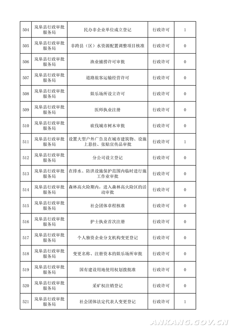 岚皋县“最多跑一次”事项清单(2021版)