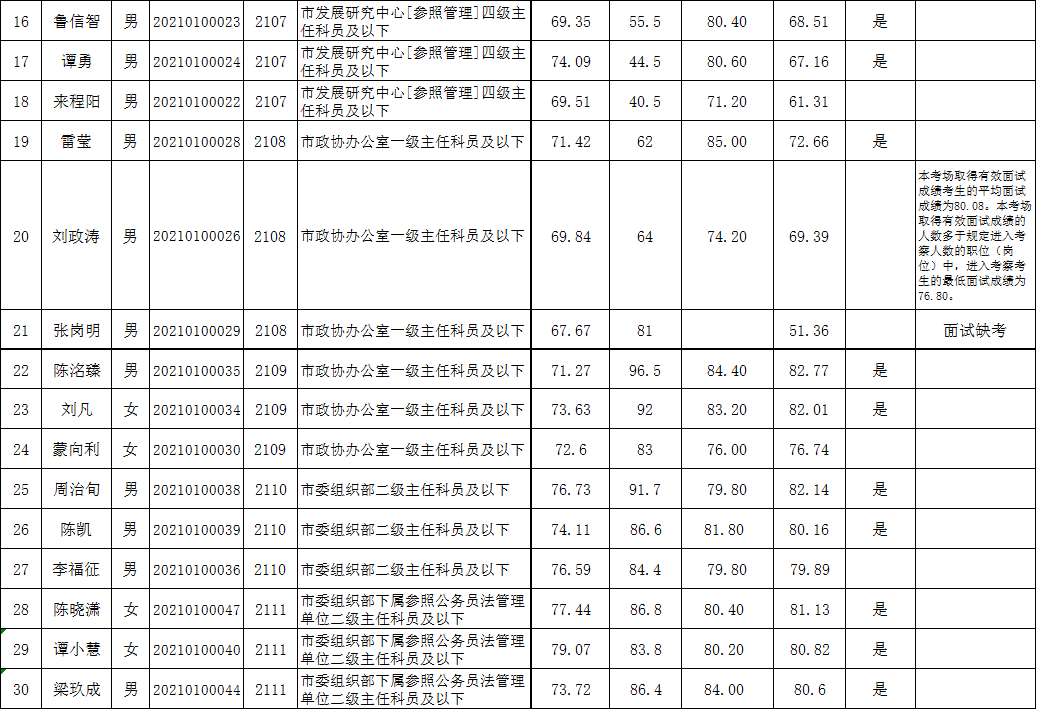 附件:2021年安康市市级机关和事业单位公开遴选工作人员进入面试考生笔试成绩、业务水平测试成绩、面试成绩、综合成绩和进入差额考察人员名单