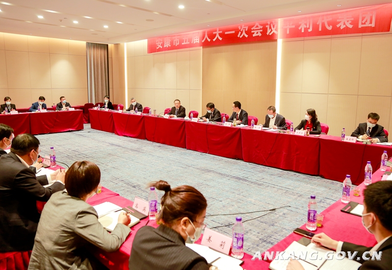 3月27日上午,市人大代表、市长武文罡来到市五届人大一次会议平利县代表团,与代表们共同审议政府工作报告,听取大家的意见建议。