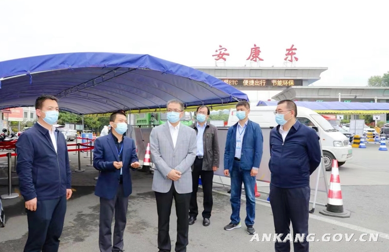 王浩(左三)一行在十天高速安康东收费站疫情防控卡点暗访检查常态化疫情防控措施落实情况