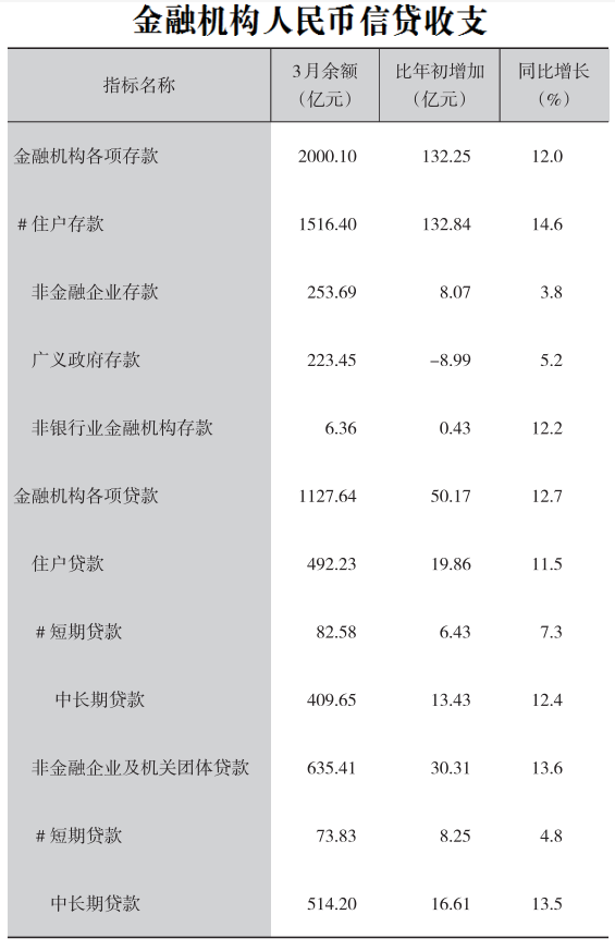 2022年一季度金融机构人民币信贷收支
