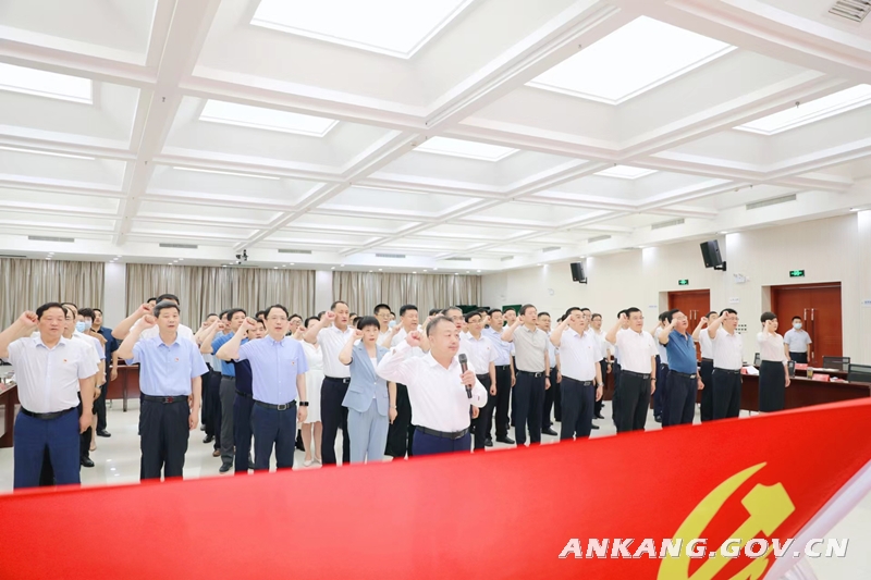 7月1日,安康市举行市级党员领导干部主题党日活动,重温入党誓词,重温习近平总书记在庆祝中国共产党成立100周年大会上的重要讲话。市委书记武文罡主持并讲话。